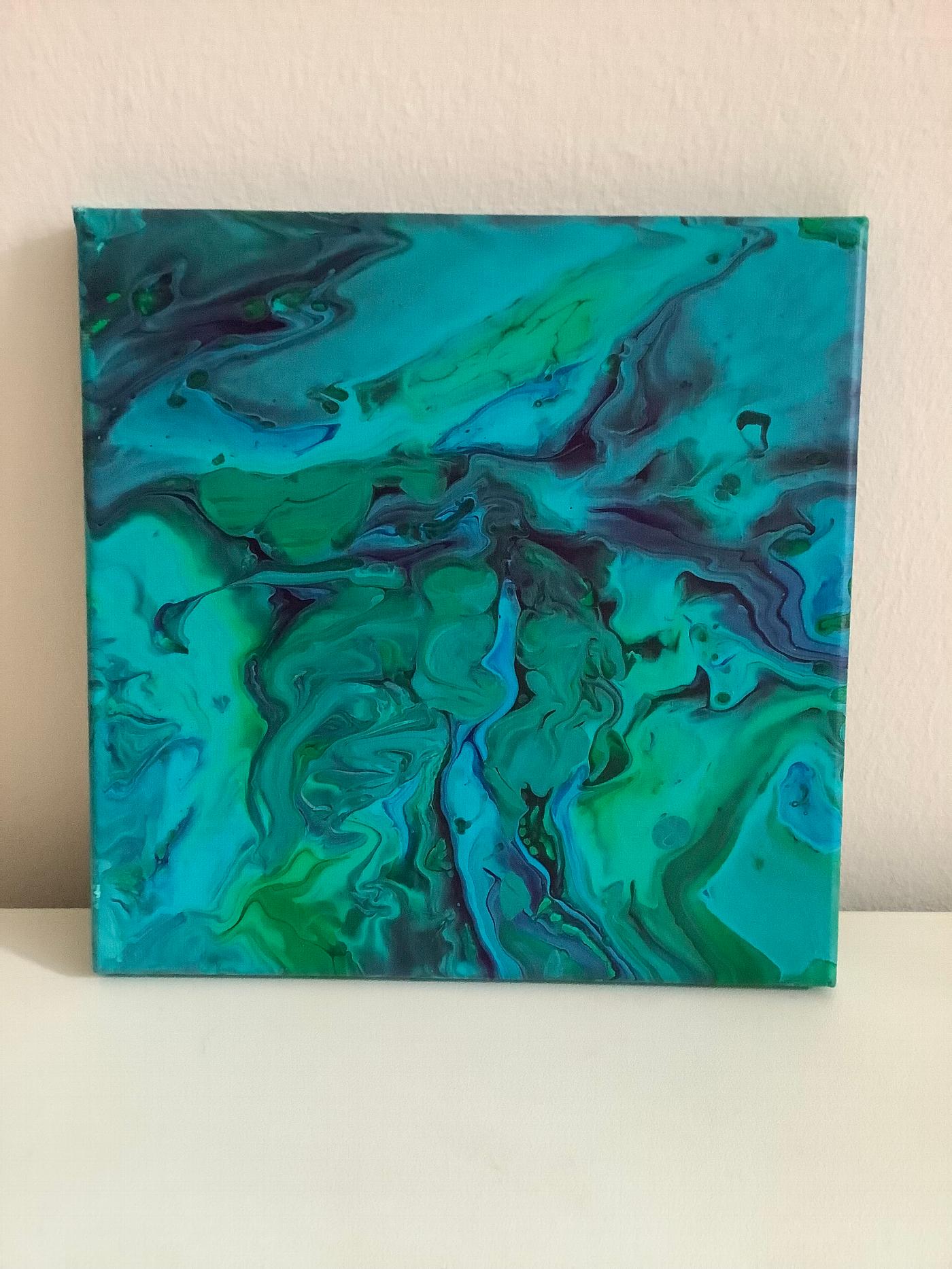 Fluid Art is also known as flow art or acrylic paint pouring. Exactly the same as pouring resin, there's an element of experimentation in this abstract painting technique...it's impossible to know how the painting will turn out as the colours are free flowing.